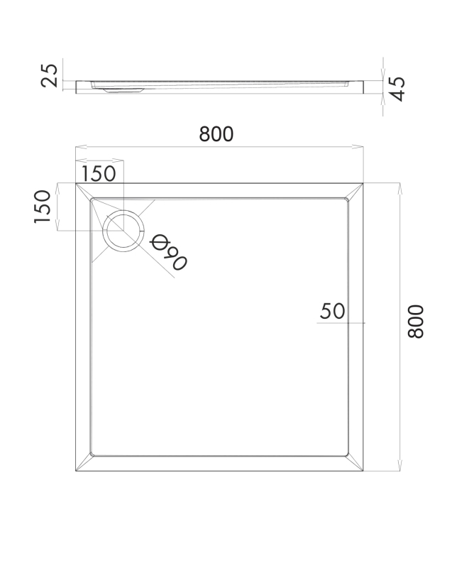 Omnires MERTON akrylátová sprchová vanička, 80 x 80 cm, bílý lesk MERTON80-KBP