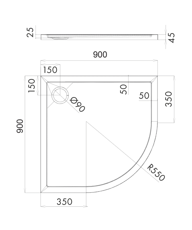 Omnires MERTON akrylátová sprchová vanička, 90 x 90 cm, bílý lesk MERTON90-OBP