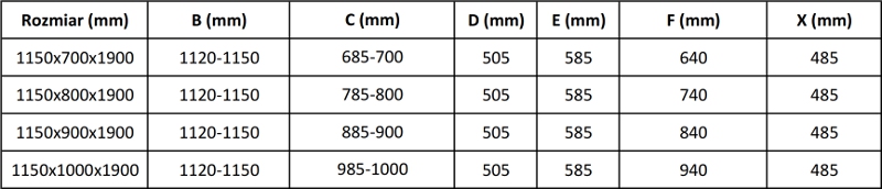 Rozměr: 115x80 cm (dveře 115 cm. stěna 80 cm)