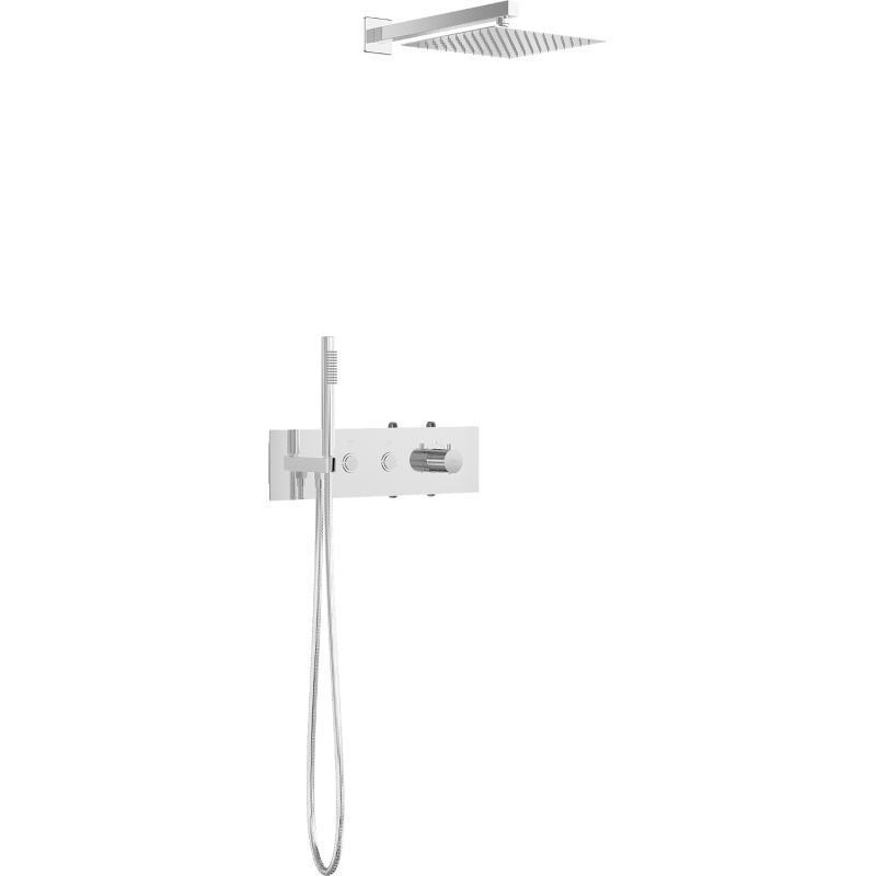 Specyfikacja produktu: Materiał: Stal nierdzewna Kolor: Chrom Ilość funkcji: 2 Słuchawka prysznicowa Wąż z osłoną ze stali nierdzewnej 150 cm Deszczownica ze strumieniem deszczowym, z możliwością regulacji kąta nachylenia Dysze silikonowe Anti-Calc ułatwiają usuwanie kamienia Brak możliwości regulacji ciśnienia wody, włączenie i wyłączenie strumienia z funkcją ON-OFF