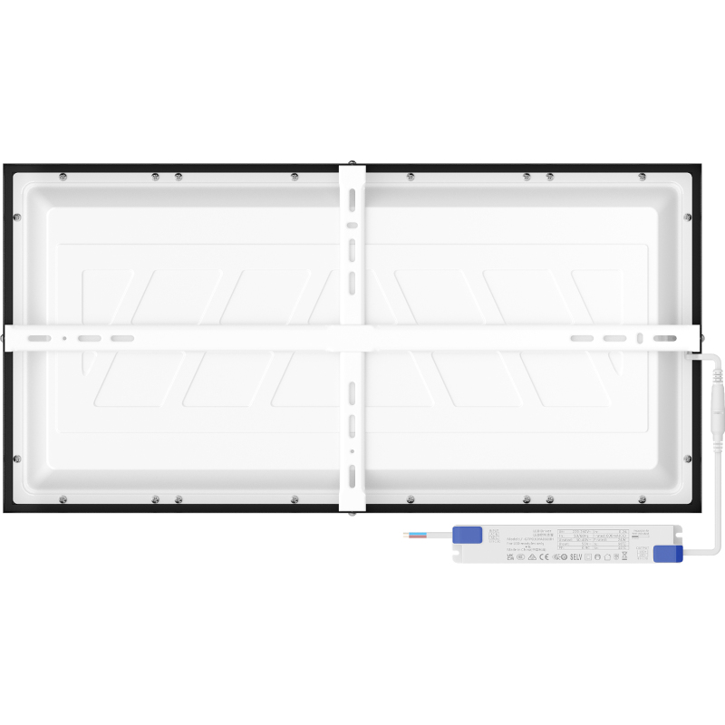 Dane techniczne: Długość: 600 mm Szerokość: 300 mm Wysokość: 39 mm Rodzaj diody: LED SMD Zintegrowane źródło światła LED: Tak Moc: 24 W Całkowity strumień świetlny: 3456 lm Skuteczność świetlna: 120 lm/W Barwa światła: Neutralna Temperatura barwowa: 4000K Wskaźnik oddawania barw CRI: Ra ≥ 80 Możliwość ściemniania: Nie Kolor: Czarny Materiał obudowy: Stal ocynkowana Materiał klosza: Polistyren Długość przewodu: 15 cm Przekrój przewodu: 2x0,75 mm Montaż: Natynkowy Zastosowanie: Wewnętrzne Kąt świecenia: 120º Napięcie: 220-240V Zawiera osprzęt sterujący: Zasilacz renomowanej marki Lifud Rodzaj zasilania: Stałoprądowy Żywotność: 50000 h Temperatura pracy: 5°C do +25°C Klasa ochronności przed porażeniem elektrycznym: II Stopień ochrony: IP20 Certyfikaty: CE, RoHS Datkowe informacje: Produkt wyposażony