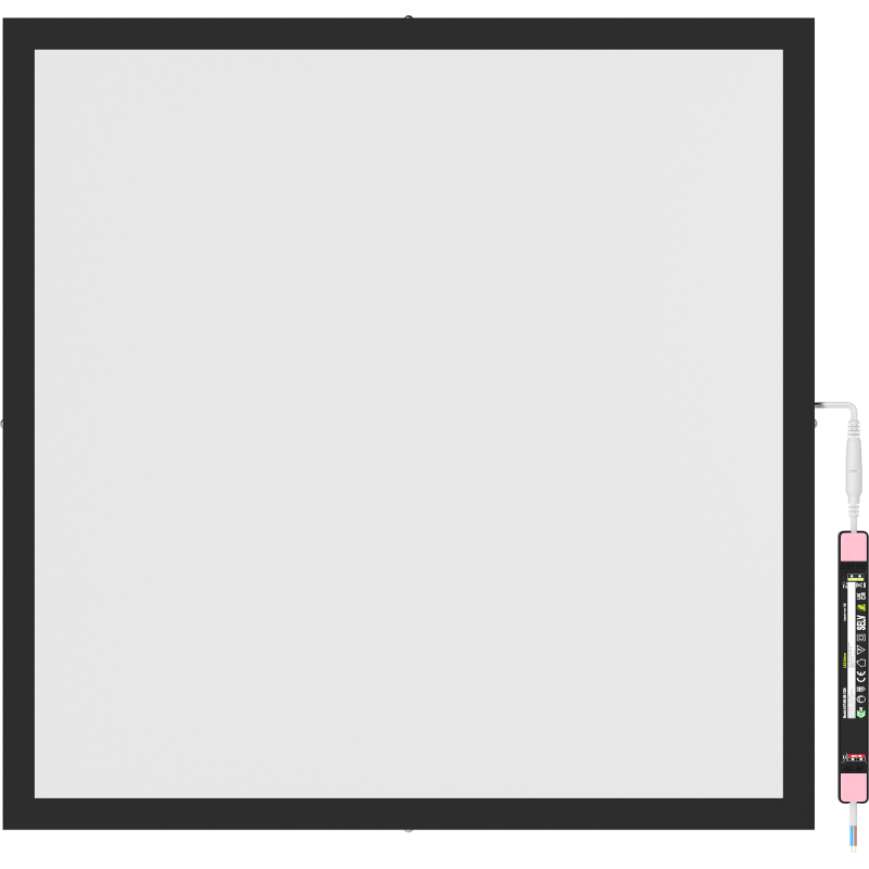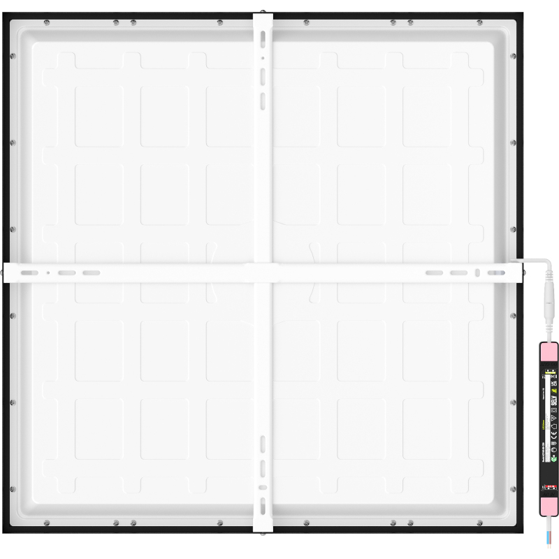 Dane techniczne: Długość: 600 mm Szerokość: 600 mm Wysokość: 39 mm Rodzaj diody: LED SMD Zintegrowane źródło światła LED: Tak Moc: 48 W Całkowity strumień świetlny: 5808 lm Skuteczność świetlna: 110 lm/W Barwa światła: Neutralna Temperatura barwowa: 4000K Wskaźnik oddawania barw CRI: Ra ≥ 80 Możliwość ściemniania: Nie Kolor: Czarny Materiał obudowy: Stal ocynkowana Materiał klosza: Polistyren Długość przewodu: 15 cm Przekrój przewodu: 2x0,75 mm Montaż: Natynkowy Zastosowanie: Wewnętrzne Kąt świecenia: 120º Napięcie: 220-240V Zawiera osprzęt sterujący: Zasilacz renomowanej marki Lifud Rodzaj zasilania: Stałoprądowy Żywotność: 50000 h Temperatura pracy: 5°C do +25°C Klasa ochronności przed porażeniem elektrycznym: II Stopień ochrony: IP20 Certyfikaty: CE, RoHS Datkowe informacje: Produkt wyposażony