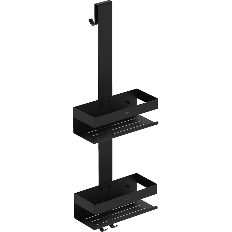 Specyfikacja produktu: Materiał: Stal nierdzewna AISI 304 Wykończenie: Czarny Szerokość: 23 cm Wysokość: 70 cm Odległość od ściany: 11,2 cm Liczba półek: 2 Pasuje do szyb prysznicowych o grubości nie większej niż 12 mm Półka posiada otwory, które zapewniają szybkie odprowadzanie wody Przyssawki zapewniające stabilność koszyka Haczyki z dwóch stron do powieszenia akcesoriów i ręczników Odporność na matowienie i korozję