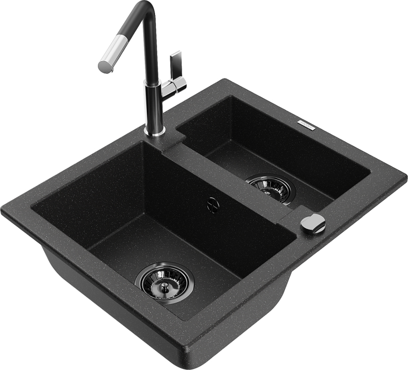 Mexen Carlos 1,5 granit dřez s baterií Flora, černá/stříbrná 6518-73-670401-07-B