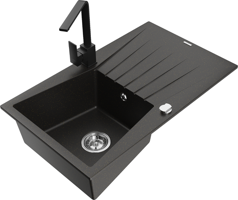 Mexen Cesar jednodřez granit s odkapem a baterií Rita, černá/zlatá 6514-75-670300-70