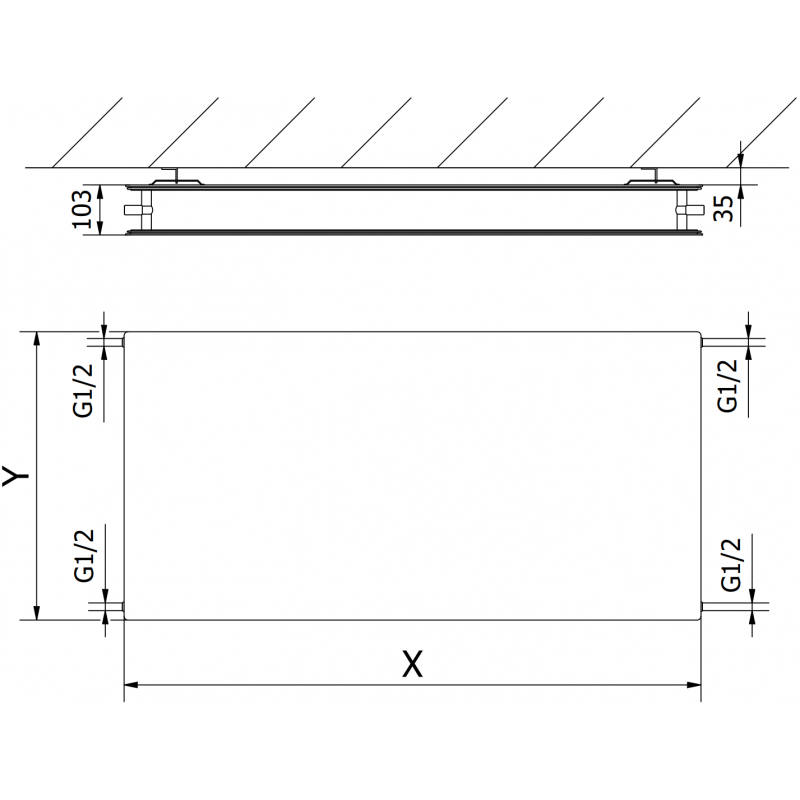 Mexen CHF20 Plochý radiátor 500x2000, boční připojení, 1725 W, černý W420HF-050-200-70