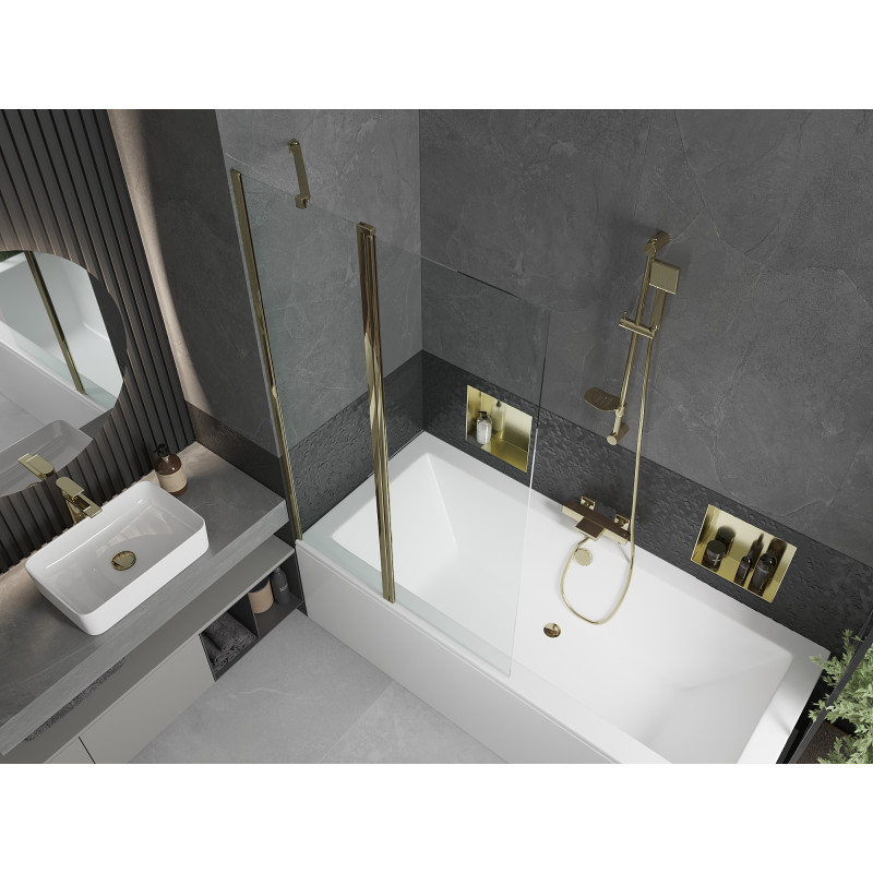 Mexen Cube vana 170x80cm panel + zástěna 100 cm, průhledná, zlatá 550517080X9410115000