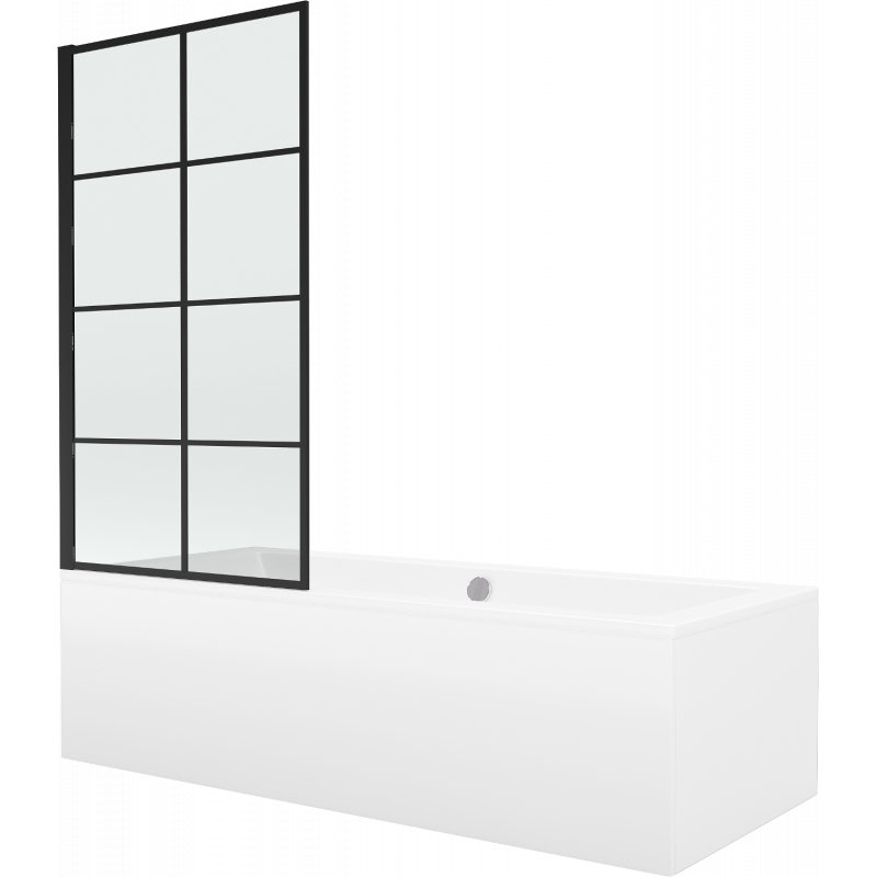 Mexen Cube vana 170x80 cm s panelem a zástěnou 80 cm, černý fix vzor 550517080X9308007077