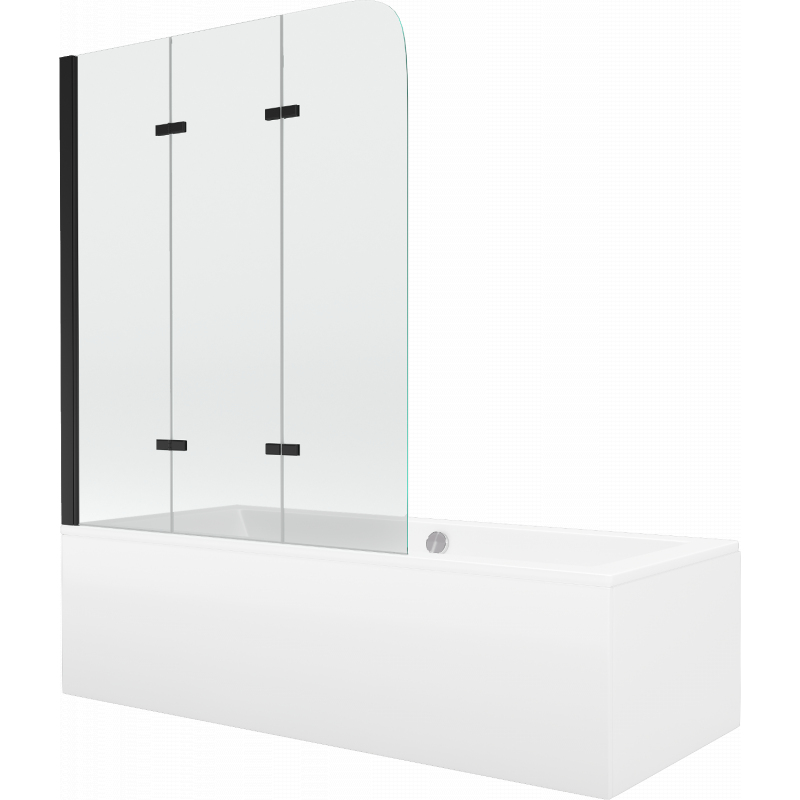 Mexen Cube vana 170x80cm panel + zástěna 120 cm, průhledná, černá 550517080X9012037000