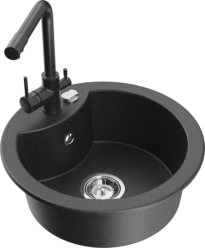 Mexen Diego 1miskový granit dřez s kuchyňskou baterií Duero, černá 6512-76-671600-76