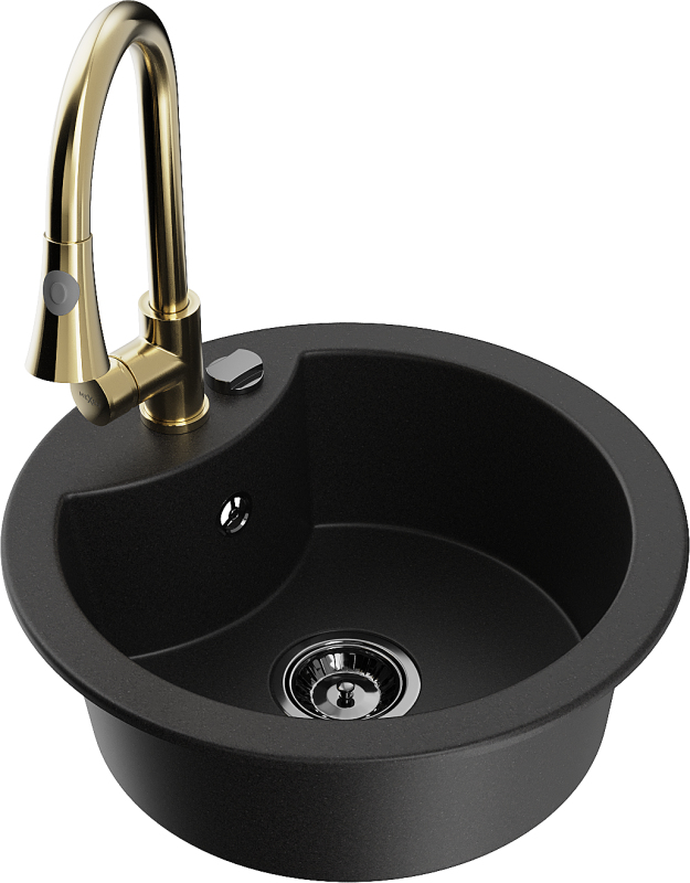 Mexen Diego 1miskový granitový dřez s kuchyňskou baterií Elia, černá - 6512-77-670101-50-B