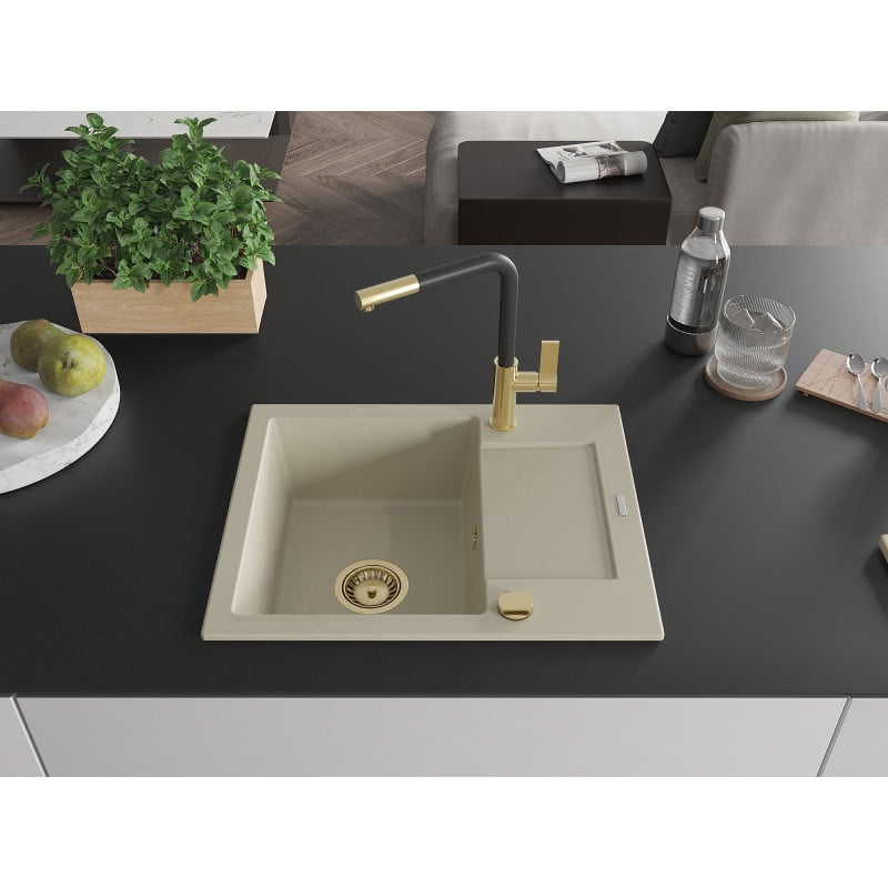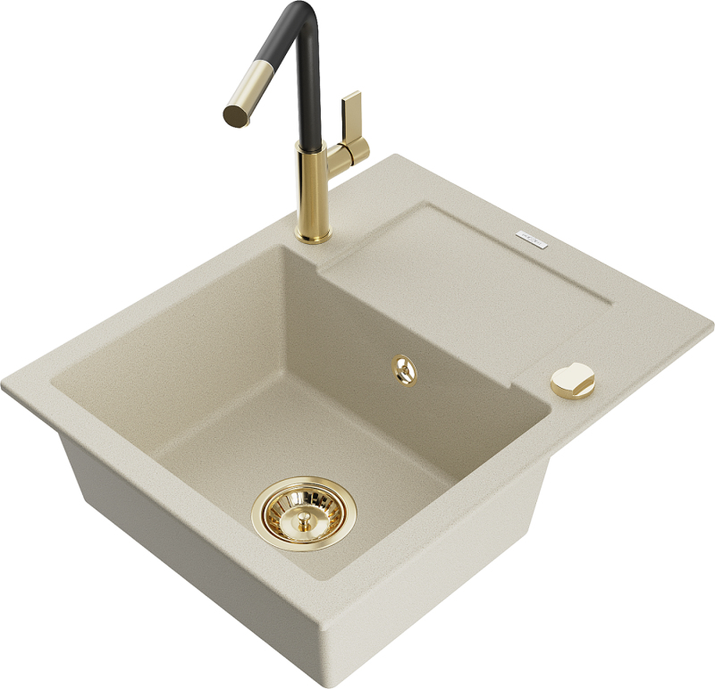 Mexen Enzo 1-miskový granit dřez s odkapem a baterií Flora, béžová 6506-69-670401-57-G