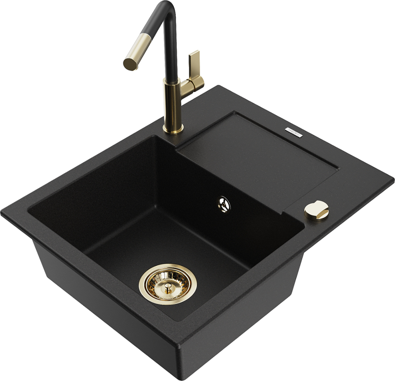 Mexen Enzo 1miskový granit dřez s odkapem a baterií Flora, černá 6506-77-670401-57-G