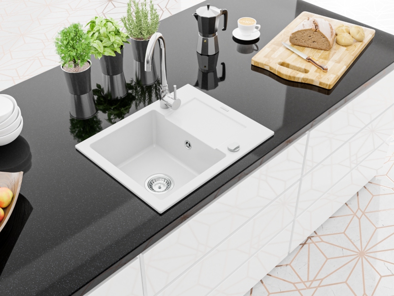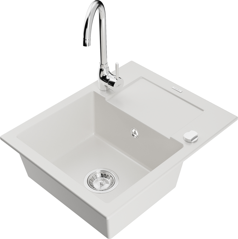 Mexen Enzo 1miskový granit dřez s odkapem a baterií Telma, bílá 6506-20-670200-00
