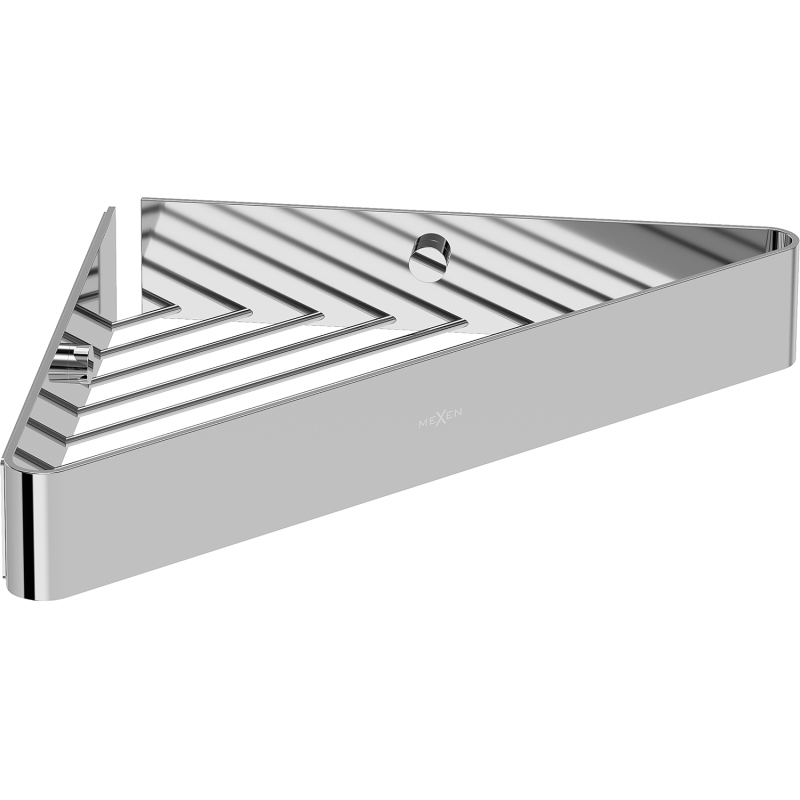Specyfikacja produktu: Materiał: Stal nierdzewna AISI 304 Wykończenie: Chrom Szerokość: 21,5 x 21,5 cm Wysokość: 4 cm Półka posiada otwory, które zapewniają szybkie odprowadzanie wody Odporność na matowienie i korozję