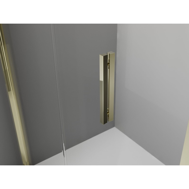 Specyfikacja produktu: Rozmiar: 90x90 cm (drzwi 90 cm. ścianki 90 cm) Wysokość: 200 cm Montaż: Uniwersalna Wejście: Drzwi składane Kolor szkła: Transparentne Wykończenie: Złoty Rodzaj szkła: Hartowane Grubość szkła: 6 mm Profil: Aluminiowy Powłoka ułatwiająca czyszczenie Niwelacja nierówności ściany Regulacja szerokości Możliwość montażu na brodziku lub płytkach Metalowy uchwyt Komplet uszczelek odprowadzających wodę Aluminiowy próg uszczelniający drzwi