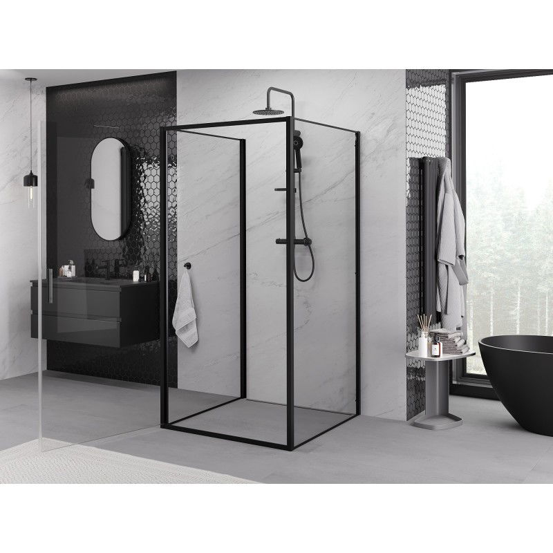 Mexen Exo-3S kabina prysznicowa 3-ścienna uchylna 70 x 70 cm, transparent, czarna - 817-070-070-70-00-3S
