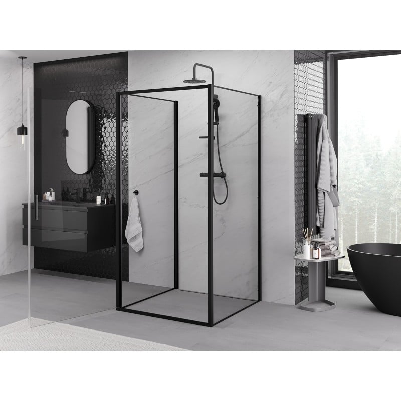 Mexen Exo-3S kabina prysznicowa 3-ścienna uchylna 85 x 85 cm, transparent, czarna - 817-085-085-70-00-3S