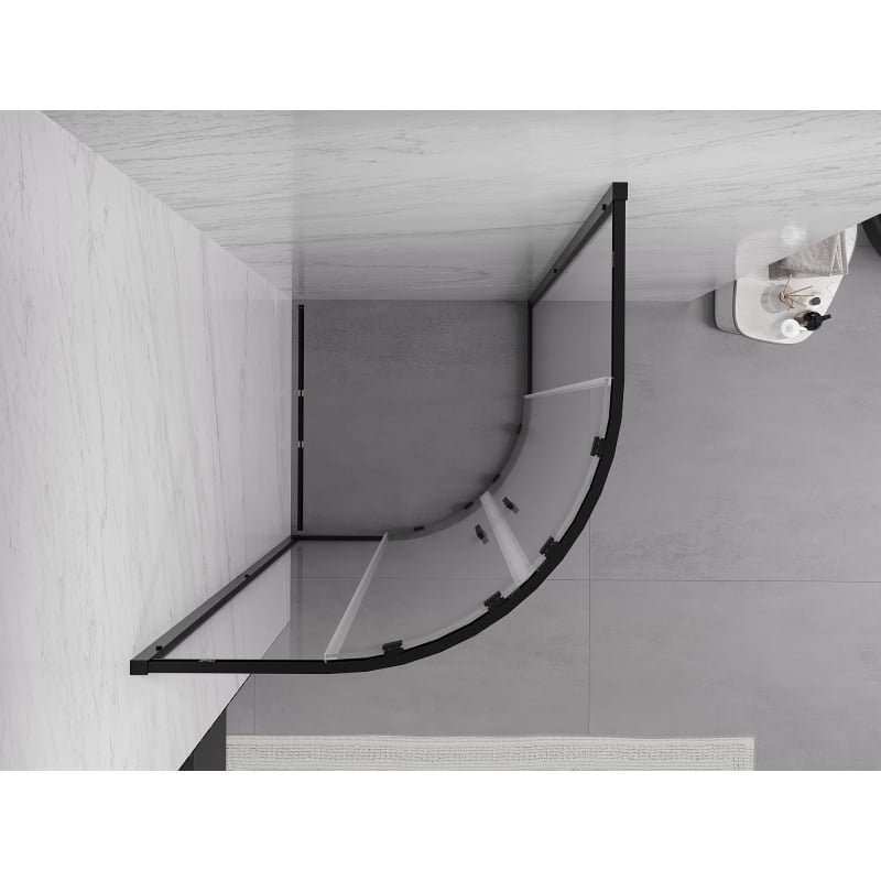 Specifikace produktu: Rozměr: 100x100 cm Výška: 200 cm Poloměr zakřivení R55 Montáž: Univerzální Vstup: Posuvné dveře Barva skla: Průhledná Povrchová úprava: Černá Typ skla: Tvrzené Tloušťka skla: 6 mm Profil: Hliník Povlak pro snadné čištění Vyrovnání nerovností stěny Nastavení šířky Možnost montáže na sprchovou vaničku nebo obklady Kovová rukojeť Sada těsnění pro odvod vody Hliníkový práh pro těsnění dveří