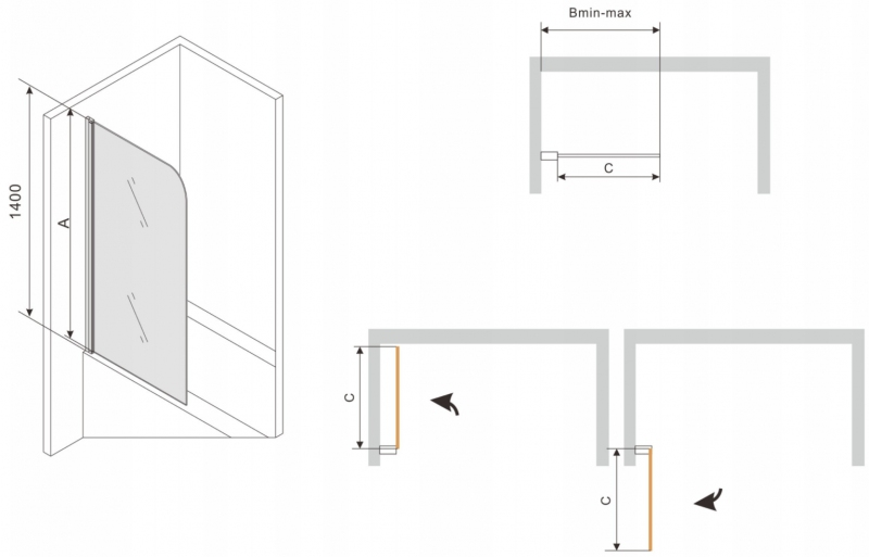 Mexen Felix vanová zástěna jednokřídlá 70 x 140 cm, grafit, chrom - 890-070-001-01-40