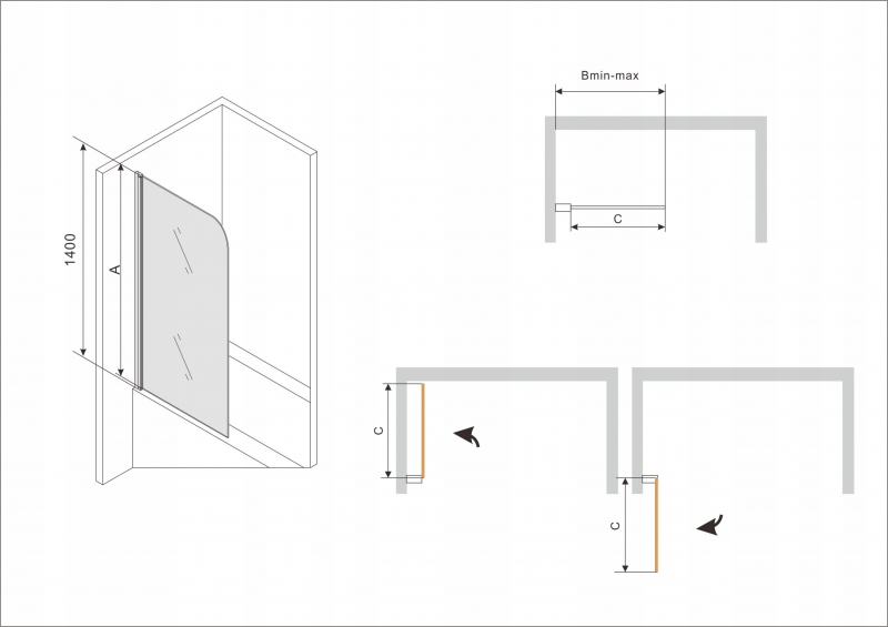 Mexen Felix vanová zástěna jednokřídlá 70 x 140 cm, transparentní, zlatá 890-070-001-50-00
