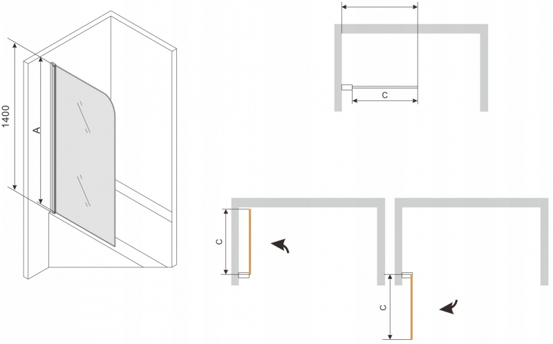 Mexen Felix vanová zástěna jednokřídlá 75 x 140 cm, transparentní, chrom 890-075-001-01-00