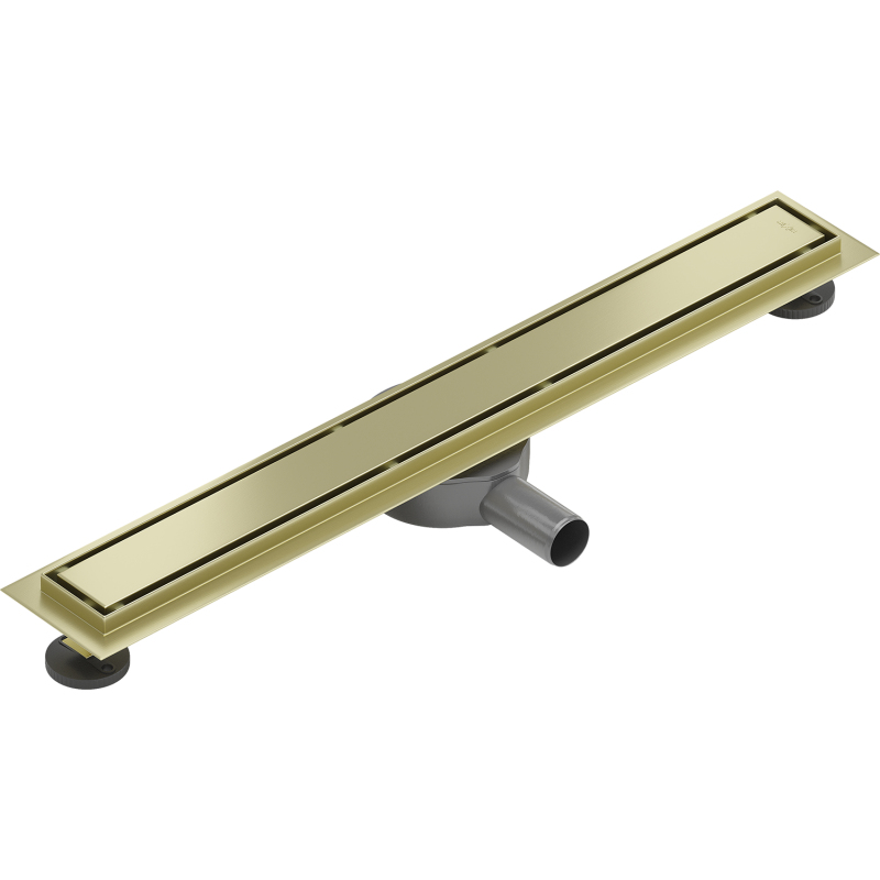 Technické údaje: Materiál: Nerezová ocel AISI 304 Povrchová úprava: Kartáčované zlato Šířka: 60 cm Otočný sifon 360° Instalační hloubka: 52 mm Průtok: 50 l/min Mřížka pro lepení dlaždic šířky 50 mm Žlab a mřížka o tloušťce 1,2 mm Obvodový límec - 2 cm Hloubka mřížky - 12 mm Sada obsahuje: Oboustranný kryt s tlumicími podložkami Vyjímatelný filtr nečistot Otočný sifon pro zachycení nepříjemných pachů Žlab pro odvod vody Nastavitelné nožičky Redukce 50/40 mm Těsnicí manžeta Háček pro sejmutí krytu