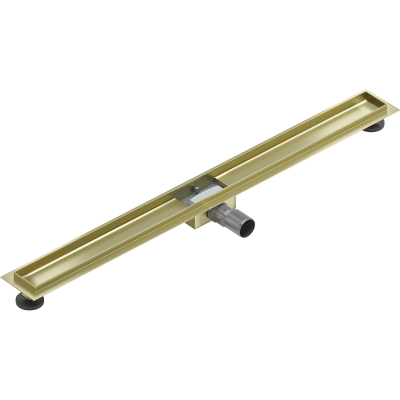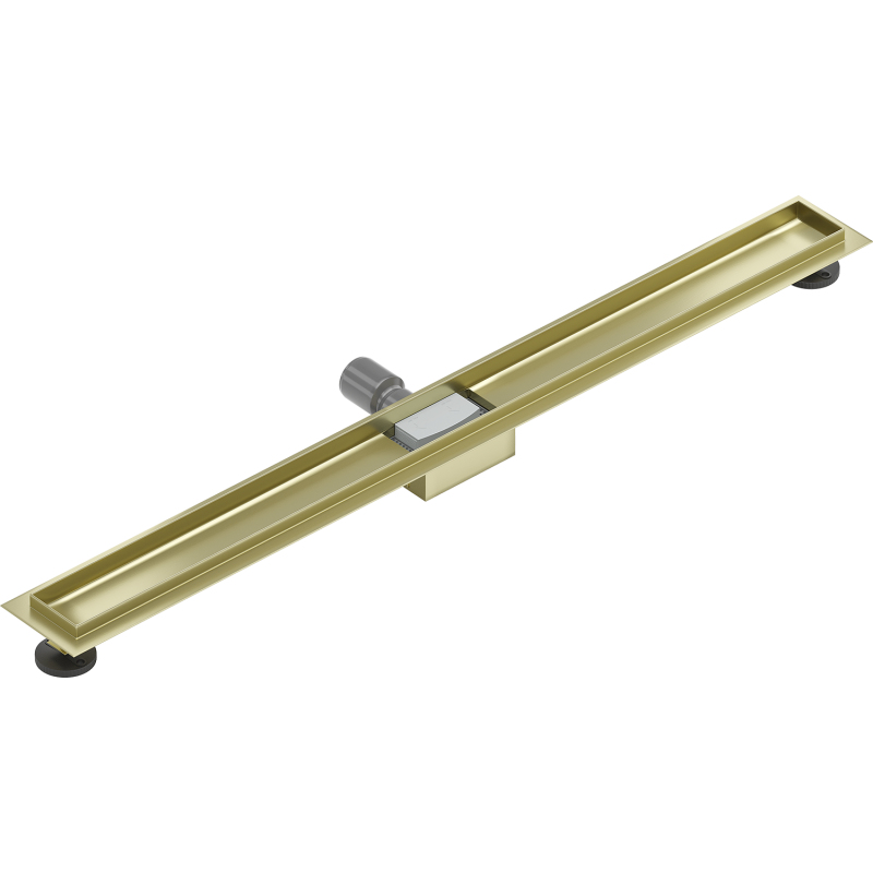 Dane techniczne: Materiał: Stal nierdzewna AISI 304 Wykończenie: Złoty szczotkowany Szerokość: 90 cm Głębokość montażu: 52 mm Przepustowość: 50 l/min Do kompletowania z maskownicami M W zestawie: Stabilizatory montażu Regulowane nóżki Wyjmowany filtr zanieczyszczeń Kołnierz okalający - 2 cm Syfon zatrzymujący przykre zapachy Rynna odprowadzająca wodę Redukcja 50/40 mm