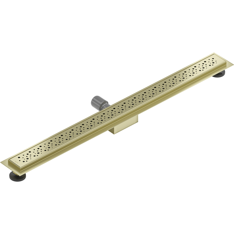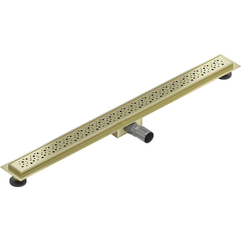 Specyfikacja produktu: Materiał: Stal nierdzewna AISI 304 Wykończenie: Złoty szczotkowany Szerokość: 100 cm Głębokość montażu: 52 mm Przepustowość: 50 l/min Kołnierz okalający - 2 cm W zestawie: Maskownica z dystansami tłumiącymi Wyjmowany filtr zanieczyszczeń Syfon zatrzymujący przykre zapachy Rynna odprowadzająca wodę Regulowane nóżki Redukcja 50/40 mm Mankiet uszczelniający Haczyk do wyjmowania maskownicy