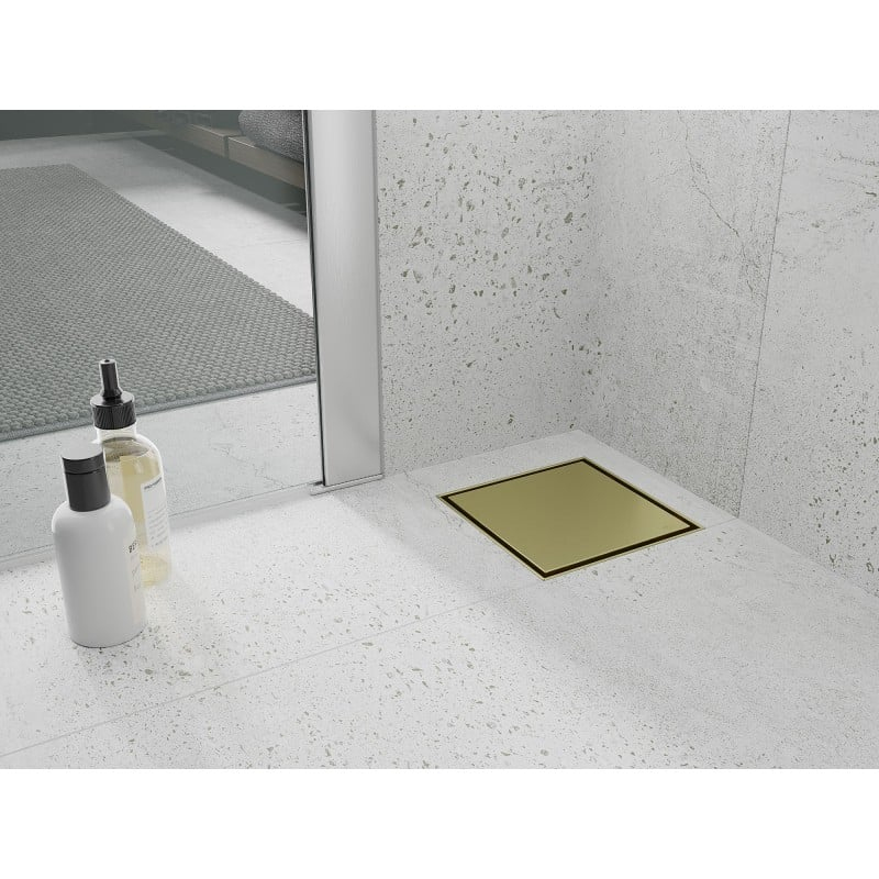 Mexen Flat-Q M13 wpust podłogowy kwadratowy 15 x 15 cm, złoty szczotkowany - 1A10015