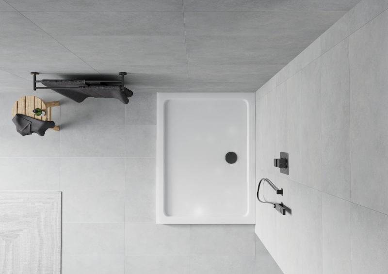 Mexen Flat štíhlá obdélníková sprchová vanička 110 x 80 cm, bílá, černý sifon - 40108011B