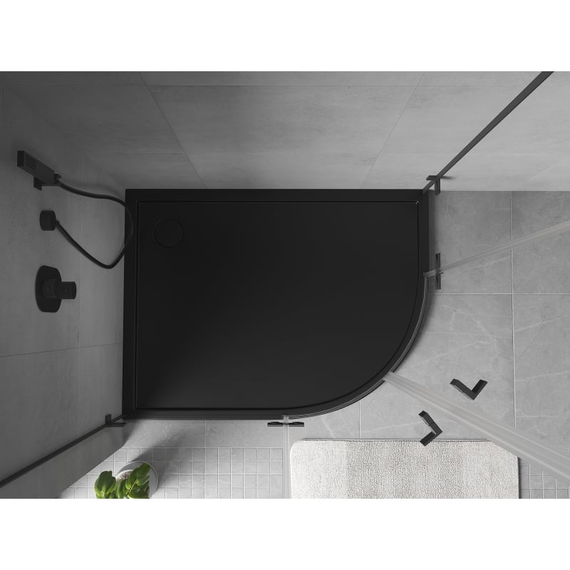 Mexen Flow půlkruhová asymetrická sprchová vanička, úzká, levá, 90 x 80 cm, matná černá - 46Q708090L