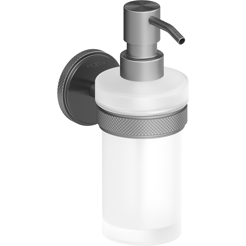 Specyfikacja produktu: Materiał: Stal nierdzewna + Szkło Wykończenie: Gun gray szczotkowany Szerokość: 7 cm Wysokość: 17 cm Odległość od ściany: 10,8 cm Pojemność: 230 ml