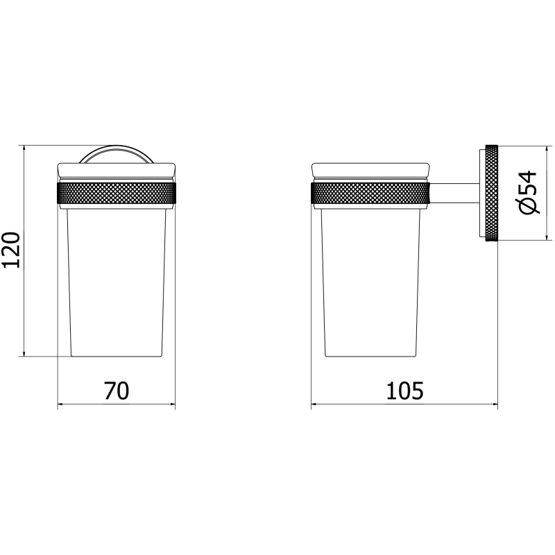 Specyfikacja produktu: Materiał: Stal nierdzewna + Szkło Wykończenie: Miedź szczotkowana Szerokość: 7 cm Wysokość: 12 cm Odległość od ściany: 10,5 cm