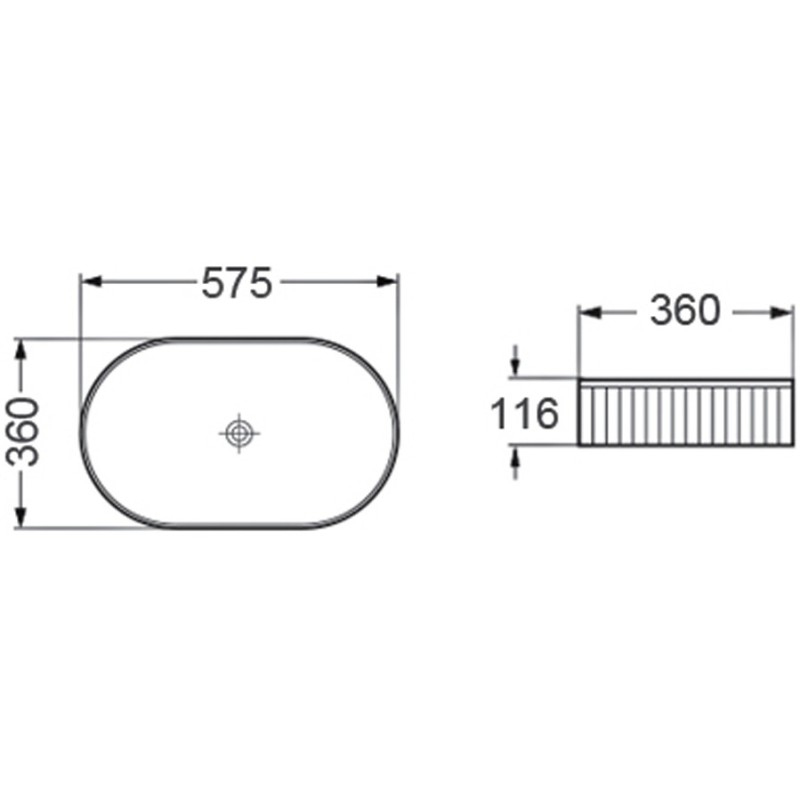 Specyfikacja produktu: Rozmiar: 57,5x36x11,6 cm Typ: Nablatowa Kolor: Biały Otwór przelewowy: Nie Otwór na baterie: Nie Materiał: Ceramika sanitarna