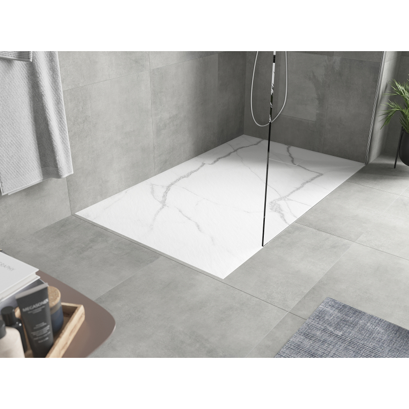 Dane techniczne: Rozmiar: 140x70x2,6 cm Kolor: Biały kamień Typ: Prostokątny, Ultrapłaski Montaż: W posadzce lub na posadzce Materiał: SMC - tworzywo sztuczne Struktura kamienia Możliwość przycięcia brodzika Trwały produkt, który nie ulegnie deformacji Maksymalna stabilność dzięki dobrej odporności na uderzenia W komplecie syfon czyszczony od góry Średnica odpływu: 90 mm Wykończenie maskownicy: Biały kamień Każdy brodzik posiada unikalny wzór naturalnego kamienia