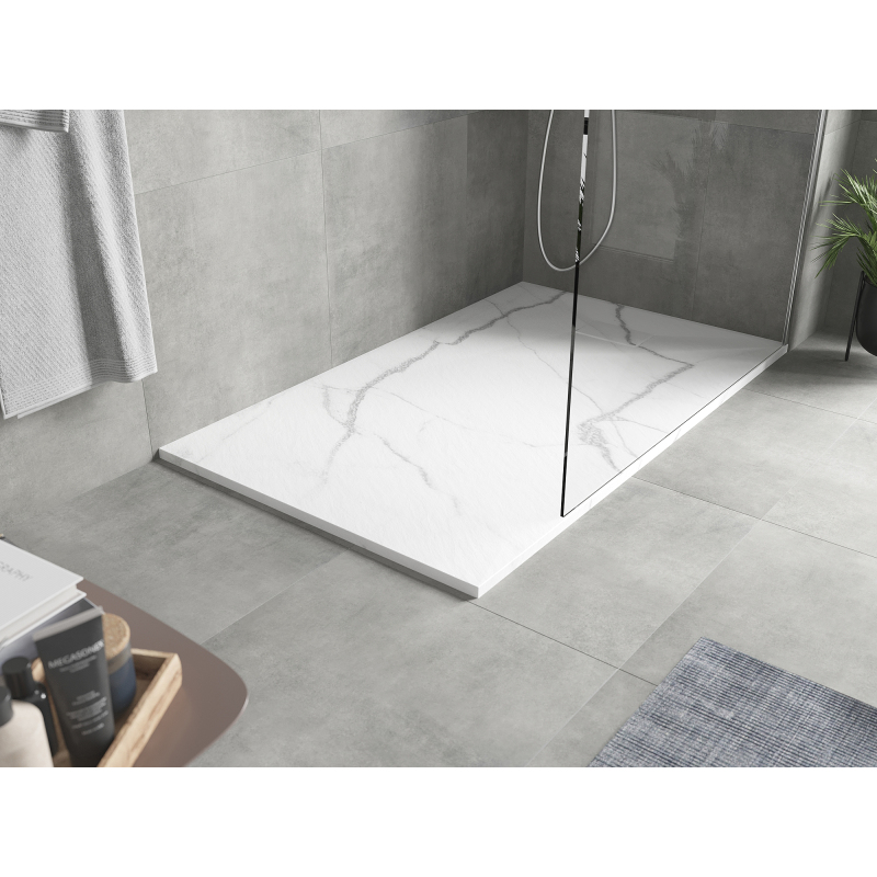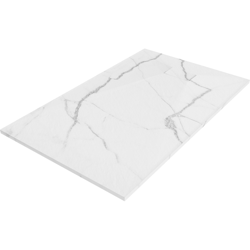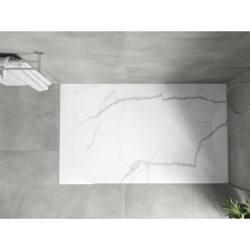 Dane techniczne: Rozmiar: 140x90x2,6 cm Kolor: Biały kamień Typ: Prostokątny, Ultrapłaski Montaż: W posadzce lub na posadzce Materiał: SMC - tworzywo sztuczne Struktura kamienia Możliwość przycięcia brodzika Trwały produkt, który nie ulegnie deformacji Maksymalna stabilność dzięki dobrej odporności na uderzenia W komplecie syfon czyszczony od góry Średnica odpływu: 90 mm Wykończenie maskownicy: Biały kamień Każdy brodzik posiada unikalny wzór naturalnego kamienia