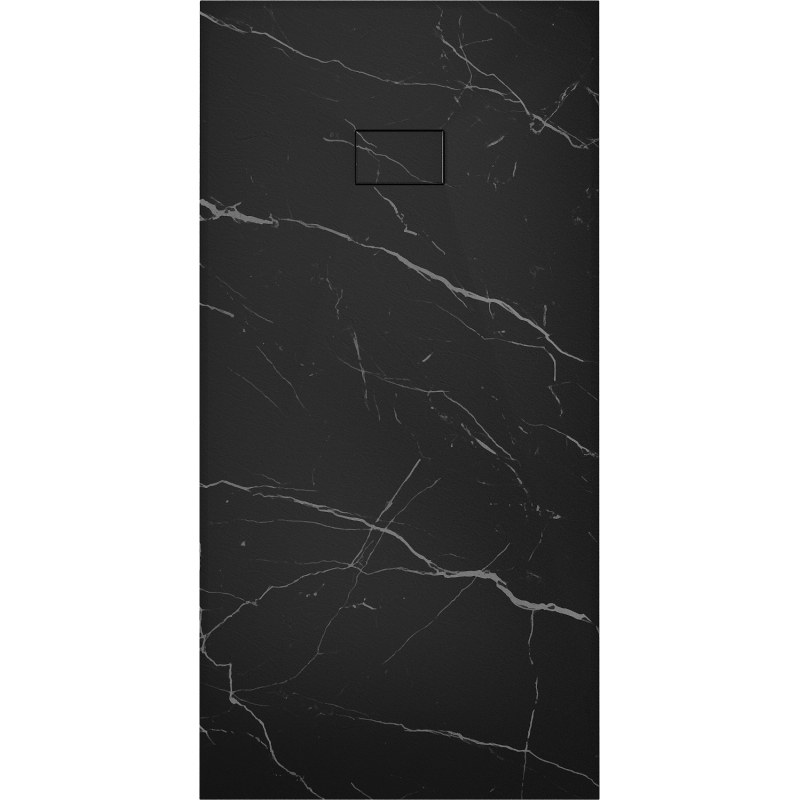 Dane techniczne: Rozmiar: 170x90x2,6 cm Kolor: Czarny kamień Typ: Prostokątny, Ultrapłaski Montaż: W posadzce lub na posadzce Materiał: SMC - tworzywo sztuczne Struktura kamienia Możliwość przycięcia brodzika Trwały produkt, który nie ulegnie deformacji Maksymalna stabilność dzięki dobrej odporności na uderzenia W komplecie syfon czyszczony od góry Średnica odpływu: 90 mm Wykończenie maskownicy: Czarny kamień Każdy brodzik posiada unikalny wzór naturalnego kamienia