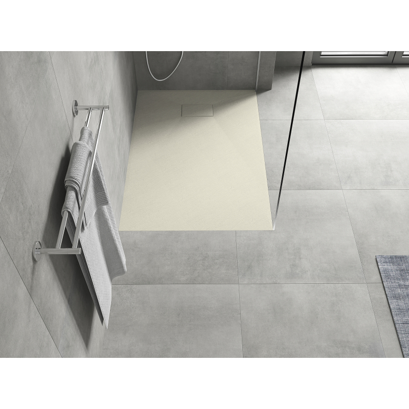 Dane techniczne: Rozmiar: 80x70x2,6 cm Kolor: Beżowy Typ: Prostokątny, Ultrapłaski Montaż: W posadzce lub na posadzce Materiał: SMC - tworzywo sztuczne Struktura kamienia Możliwość przycięcia brodzika Trwały produkt, który nie ulegnie deformacji Maksymalna stabilność dzięki dobrej odporności na uderzenia W komplecie syfon czyszczony od góry Średnica odpływu: 90 mm Wykończenie maskownicy: Beżowy