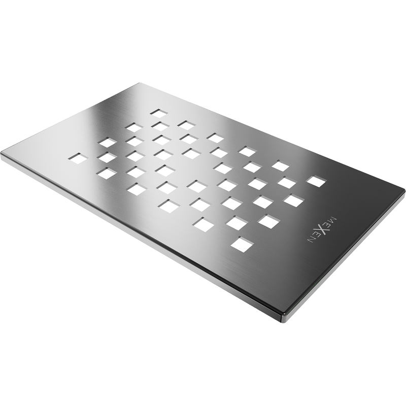 Dane techniczne: Materiał: Stal nierdzewna Wykończenie: Gun gray szczotkowany Szerokość: 20,5 cm Wysokość: 12,5 cm Pasuje do wszystkich brodzików z serii Hugo