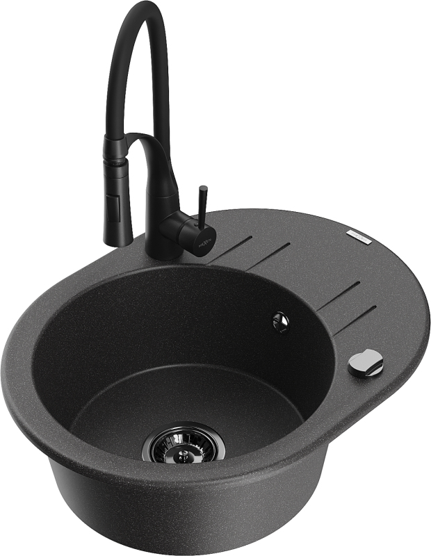 Mexen Kevin 1-miskový granit dřez s odkapem a baterií Aster, černá 6517-76-73450-70-B