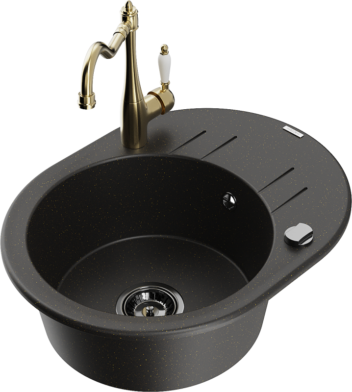 Mexen Kevin jednodřez granit s odkapem a baterií Carla, černá/zlatá 6517-75-670700-50-B