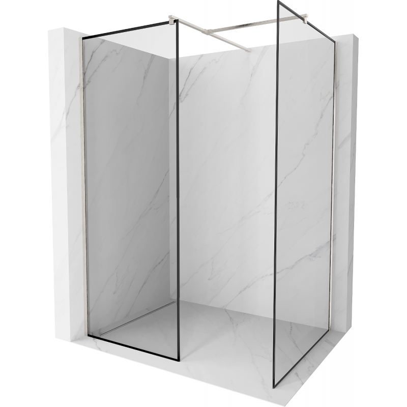 Specifikace produktu: Šířka: 100x80 cm (stěna X - 100 cm, stěna Y - 80 cm) Výška: 200 cm Montáž: Univerzální Barva skla: Černý rám Povrchová úprava: Kartáčovaný nikl Typ skla: Tvrzené Tloušťka skla: 8 mm Profil: Hliník Konzola: Nerezová ocel Max. délka konzoly: 150 cm Konzolu lze zkrátit Povrchová úprava pro snadné čištění Vyrovnání nerovností stěny Možnost montáže na sprchovou vaničku nebo obklady