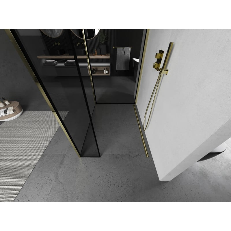 Mexen Kioto Sprchová zástěna 140 x 70 x 30 cm, černý rám, zlatá - 800-140-070-221-50-70-030