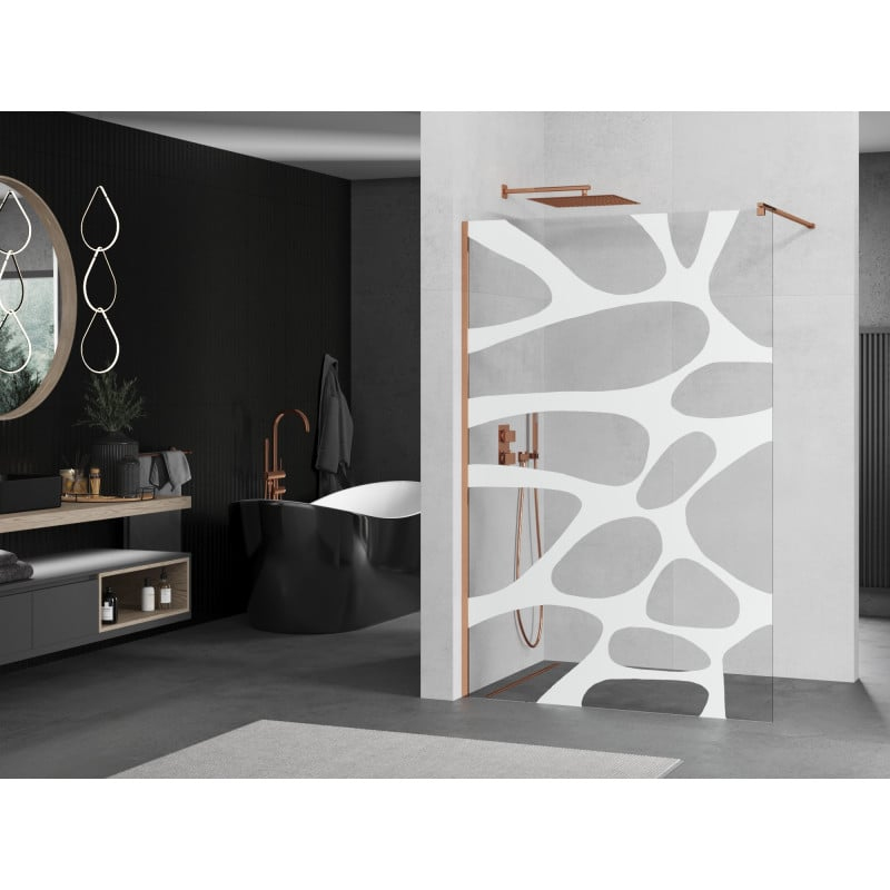 Specifikace produktu: Šířka: 80 cm Výška: 200 cm Montáž: Univerzální, pravá nebo levá Barva skla: Bílá vlna Povrchová úprava: Růžové zlato Typ skla: Tvrzené Tloušťka skla: 8 mm Profil: Hliník Konzola: Nerezová ocel Max. délka konzoly: 150 cm Konzolu lze zkrátit Povrchová úprava pro snadné čištění Vyrovnává nerovnosti stěny Možnost montáže na sprchovou vaničku nebo dlaždice