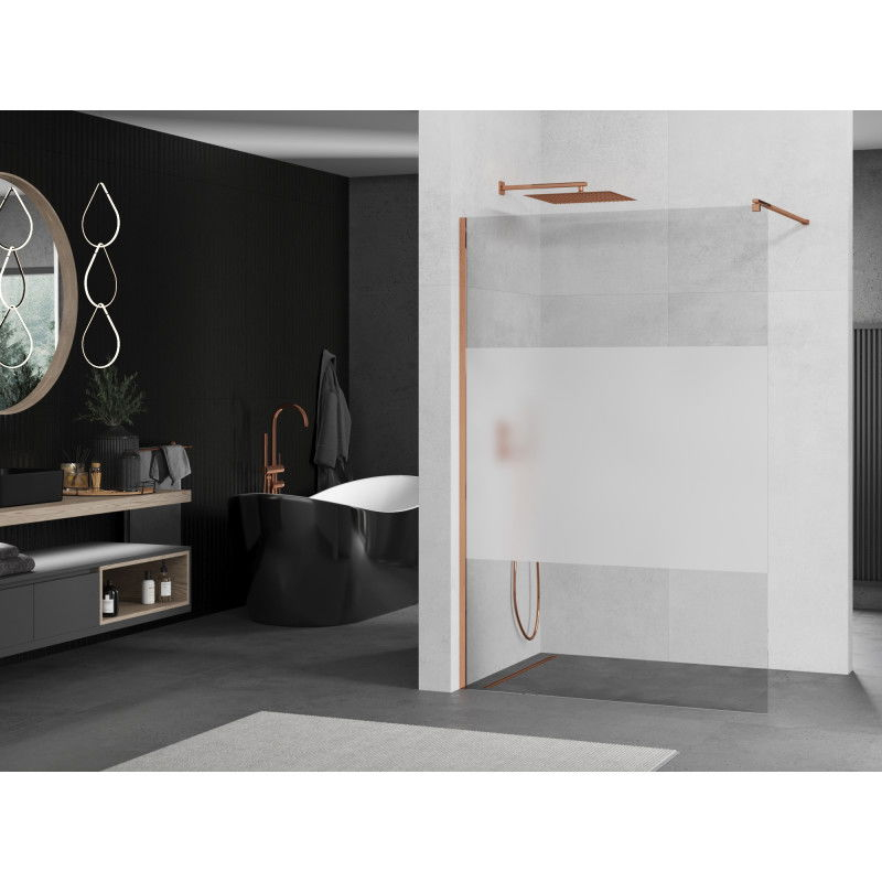 Specifikace produktu: Šířka: 80 cm Výška: 200 cm Montáž: Univerzální, pravá nebo levá Barva skla: Průhledná/Matná Povrchová úprava: Růžové zlato Typ skla: Tvrzené Tloušťka skla: 8 mm Profil: Hliník Konzola: Nerezová ocel Max. délka konzoly: 150 cm Konzolu lze zkrátit Povrchová úprava pro snadné čištění Vyrovnává nerovnosti stěny Lze namontovat na sprchovou vaničku nebo dlaždice