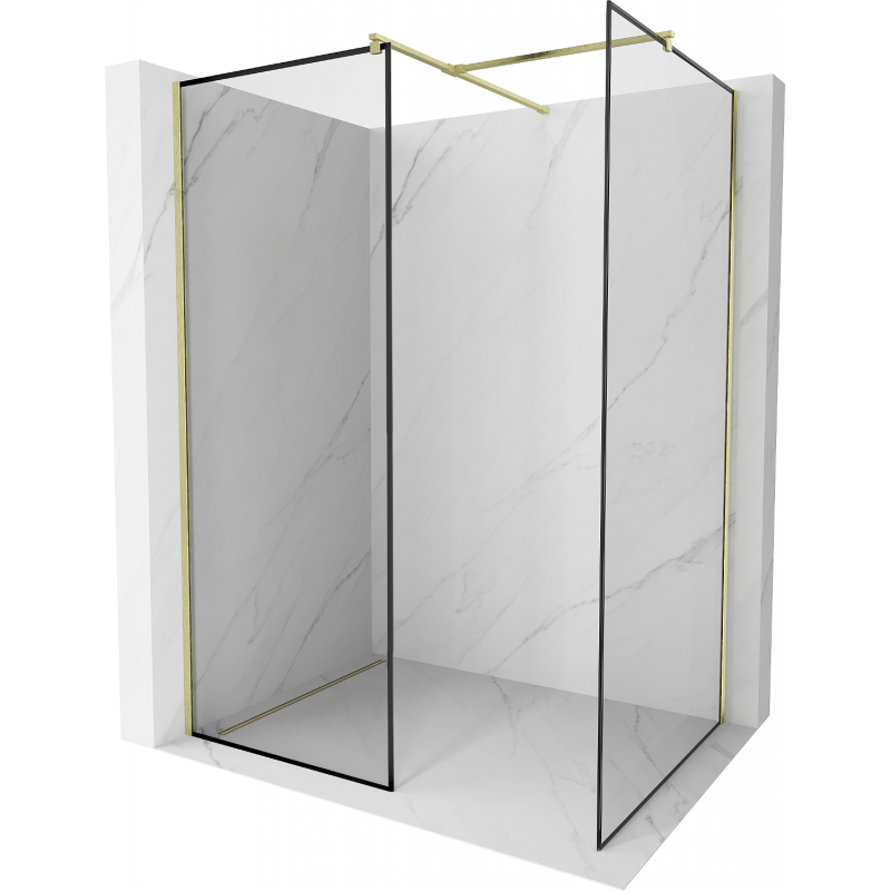 Specifikace produktu: Šířka: 90x80 cm (stěna X - 90 cm, stěna Y - 80 cm) Výška: 200 cm Montáž: Univerzální Barva skla: Černý rám Povrchová úprava: Kartáčované zlato Typ skla: Tvrzené Tloušťka skla: 8 mm Profil: Hliník Konzola: Nerezová ocel Max. délka konzoly: 150 cm Konzolu lze zkrátit Povrchová úprava pro snadné čištění Vyrovnání nerovností stěny Možnost montáže na sprchovou vaničku nebo obklady