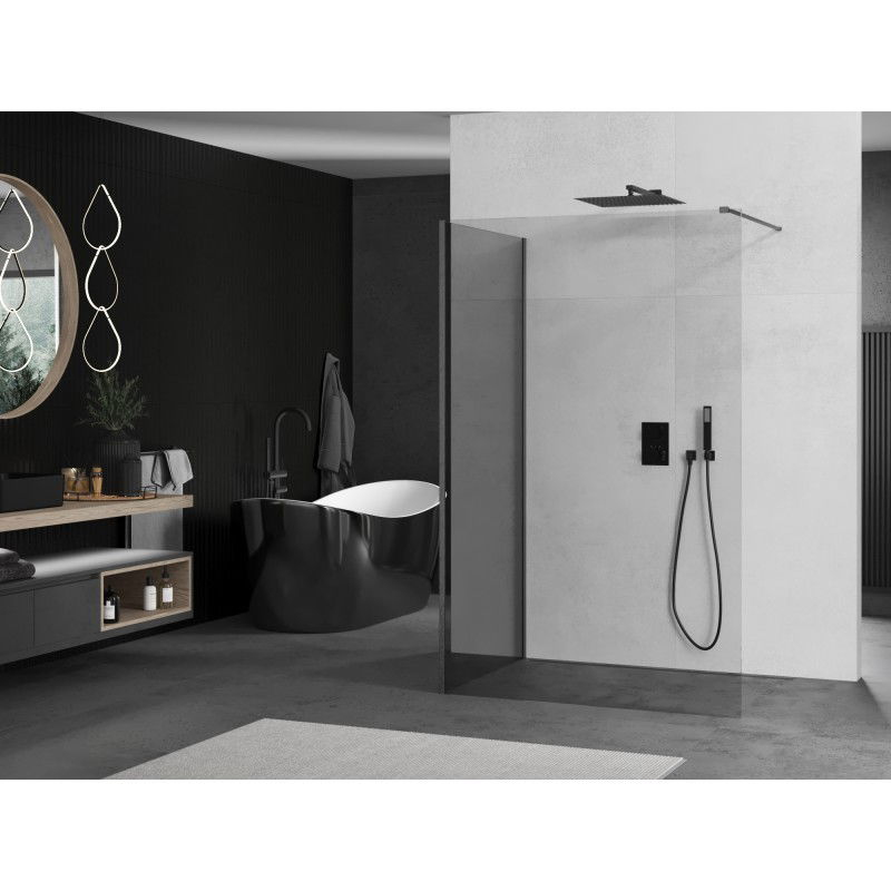 Specifikace produktu: Šířka: 90x80 cm (stěna X - 90 cm, stěna Y - 80 cm) Výška: 200 cm Montáž: Univerzální Barva skla: Průhledná Povrchová úprava: Kartáčovaná pistolově šedá Typ skla: Tvrzené Tloušťka skla: 8 mm Profil: Hliník Konzola: Nerezová ocel Max. délka konzoly: 150 cm Konzolu lze zkrátit Povrchová úprava pro snadné čištění Vyrovnání nerovností stěny Možnost instalace na sprchovou vaničku nebo obklady