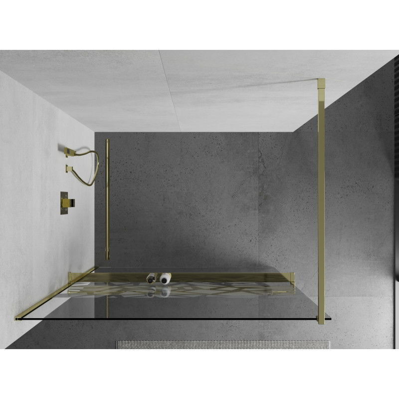 Mexen Kioto+ Sprchová zástěna s policí 120 x 200 cm, bílý vzor, zlatá - 800-120-121-50-85