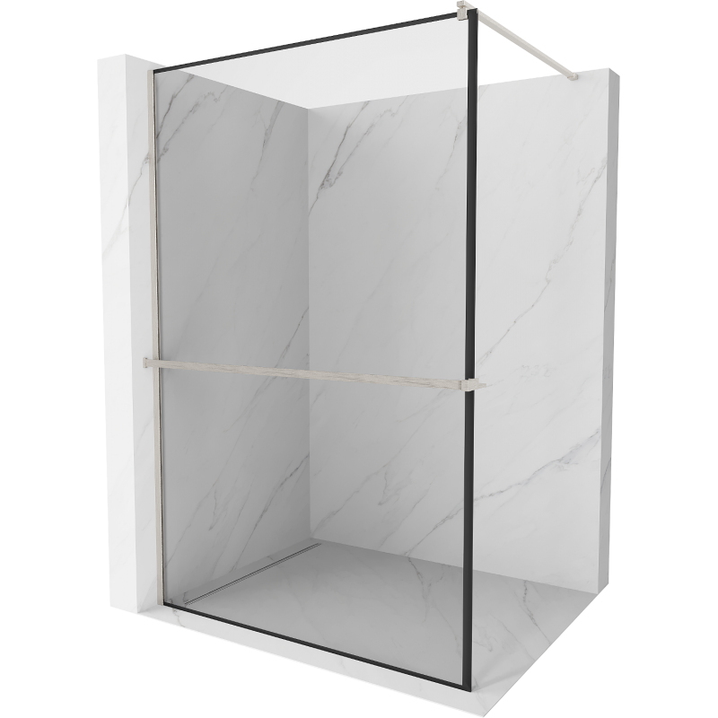 Mexen Kioto+ Sprchová zástěna s poličkou 110 x 200 cm, černý rám, kartáčovaný nikl - 800-110-121-97-70